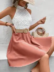 Ada - Kontrastfarbenes ärmelloses A-Linien-Kleid aus Spitze für Damen