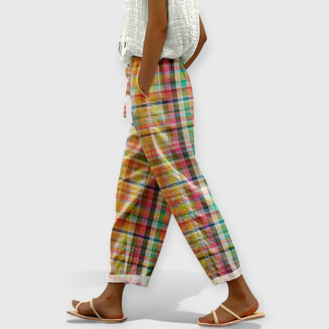 Entdecken Sie, warum unsere Bestseller, die Ailyn Hosen, die perfekte Mischung aus Stil und Komfort sind. Gefertigt mit einem einzigartigen Retro-Karomuster in warmen Orangetönen, bieten diese Hosen Charakter und einen entspannten Sitz, der den ganzen Tag fantastisch ist. Egal, ob Sie Besorgungen machen, einen gemütlichen Kaffee zu Hause genießen oder einen Spaziergang in der Sonne machen, diese vielseitigen Hosen sind Ihr unverzichtbares Kleidungsstück.