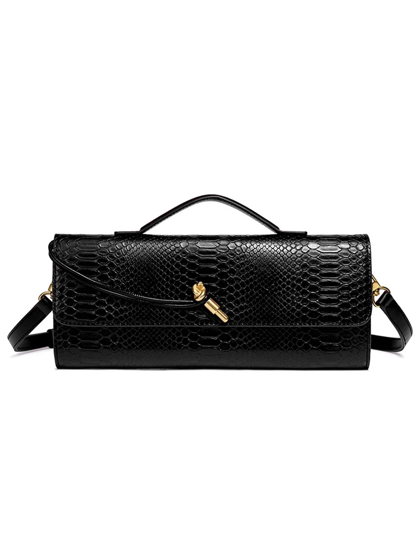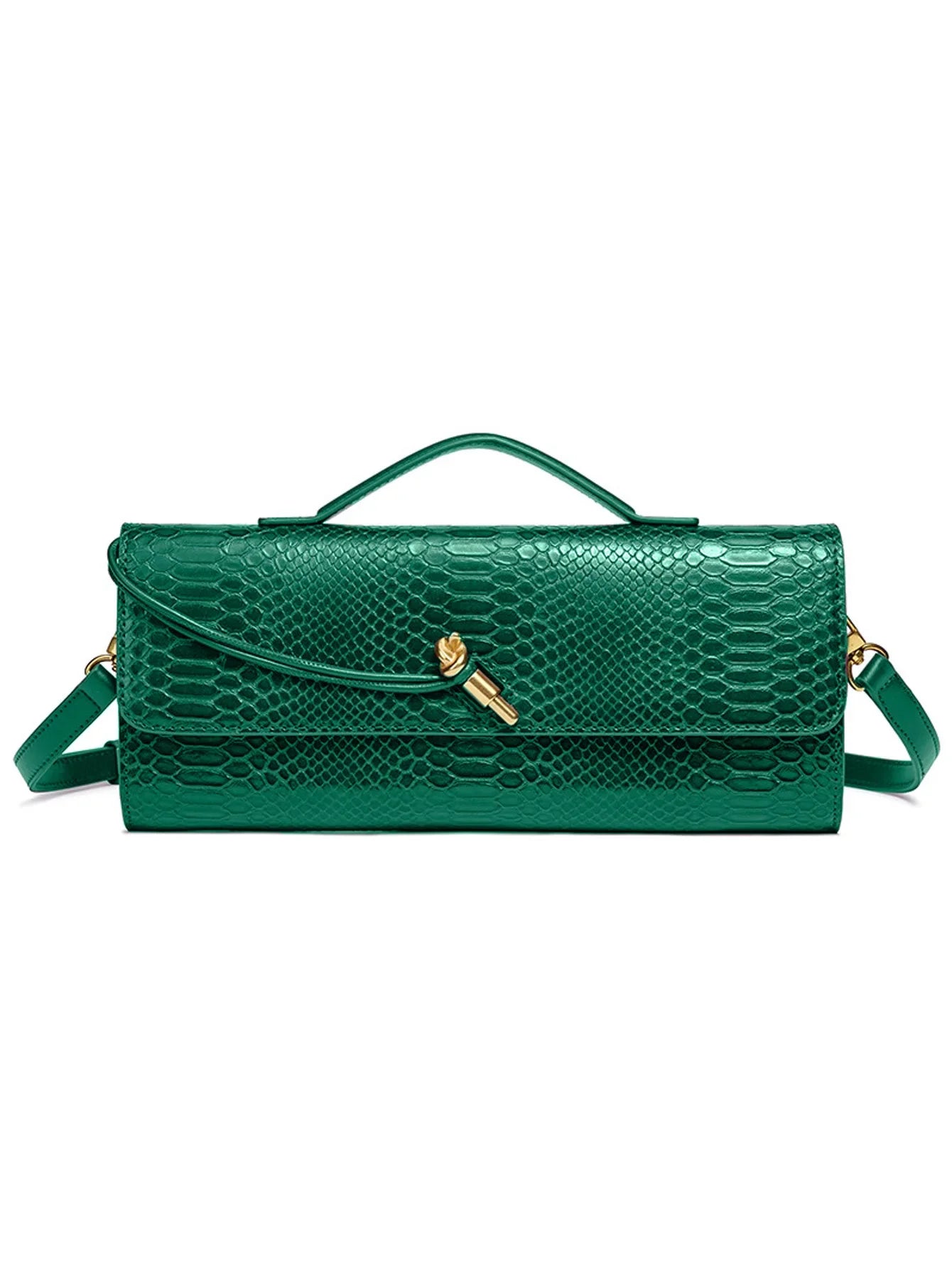 Eine luxuriöse Handtasche im Envelope-Design – modern und edel zugleich. Diese Tasche ist das perfekte Accessoire für elegante Abendveranstaltungen oder stilvolle Ausflüge. Ihr raffiniertes Design und die markante Krokodilleder-Optik machen sie zu einem echten Hingucker.