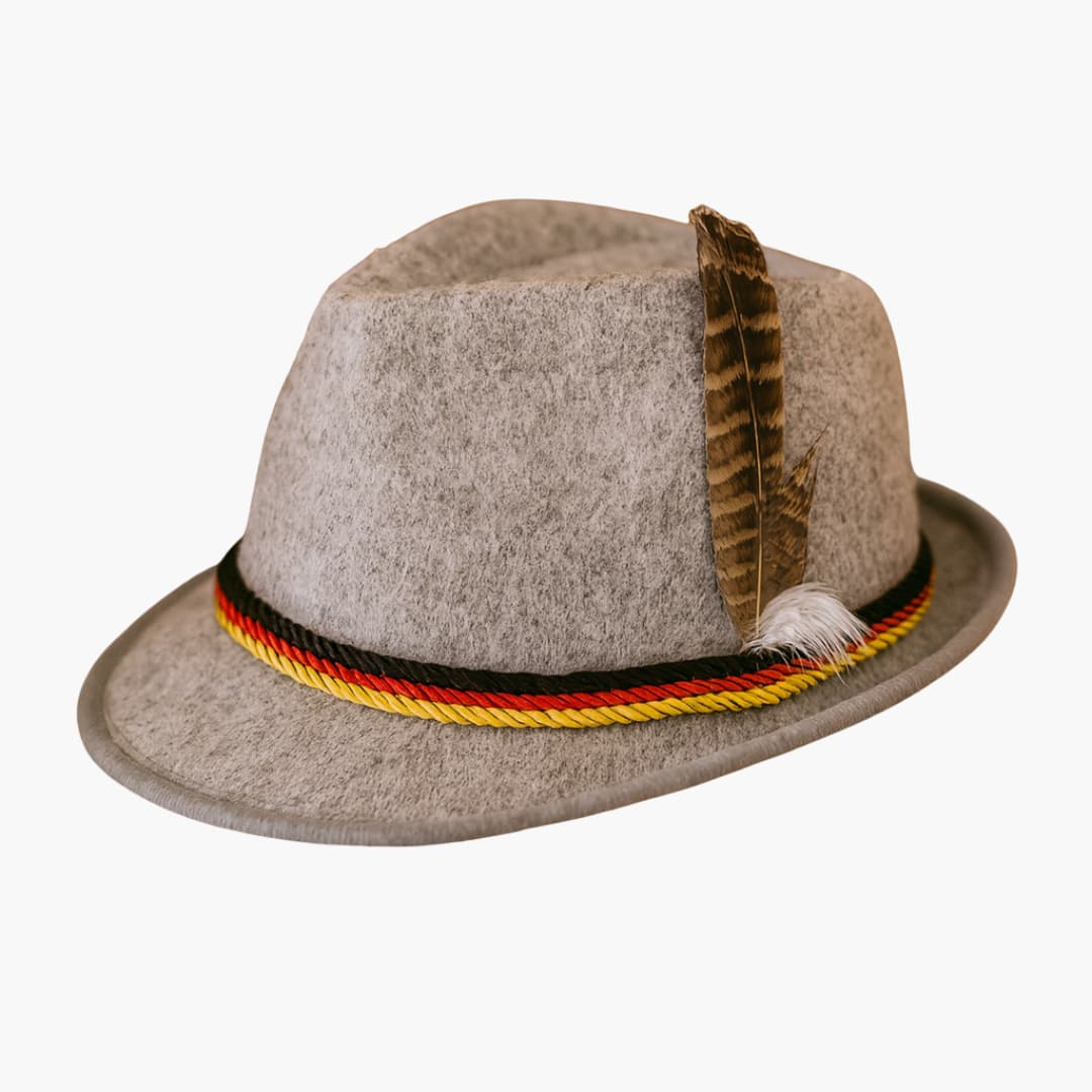 Ein klassischer Kopfschmuck im bayerischen Trachtenstil mit charakteristischer Form und dekorativer Feder. Geeignet für Herren, die bei Festen wie dem Oktoberfest oder anderen kulturellen Anlässen ein passendes Accessoire tragen möchten. Die formstabile Struktur sorgt für eine gleichbleibende Form während des Tragens.