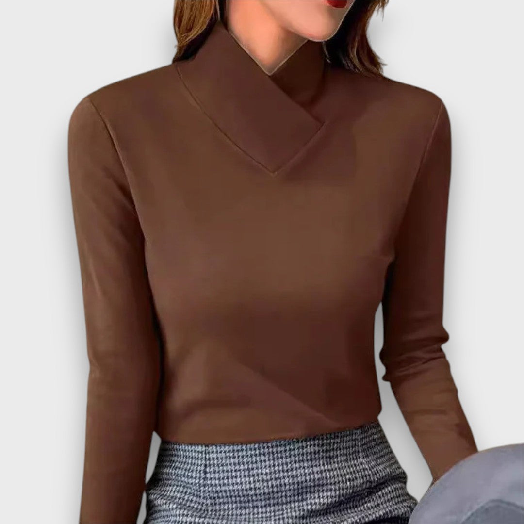 Belira verbindet schlichte Raffinesse mit modernem Schnitt. Der elegante Stehkragen setzt ein stilvolles Detail, während die figurbetonte Form eine klare Silhouette unterstreicht. Ein Top, das sich vielseitig kombinieren lässt – von Business-Looks bis zu entspannten Outfits.