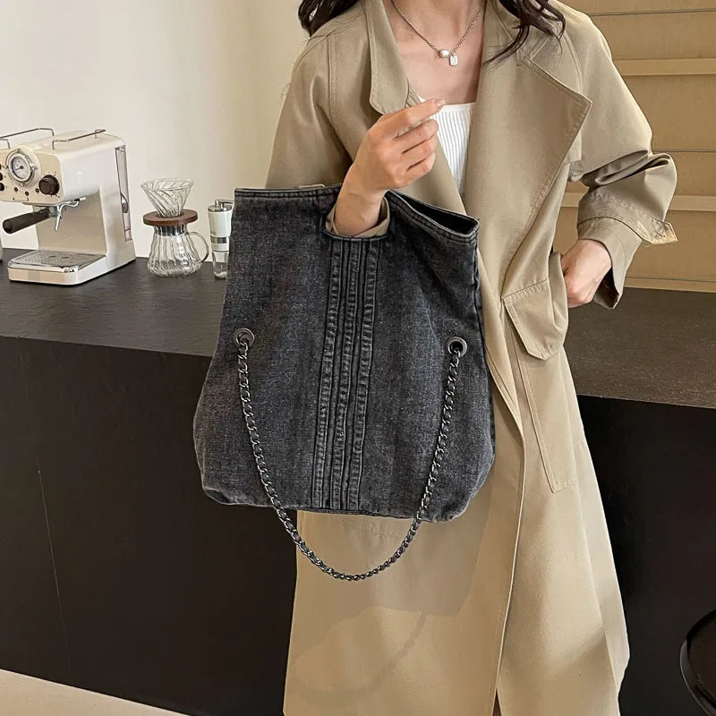 Die BILLY-Tasche vereint Stil und Funktionalität. Hergestellt aus strapazierfähigem Denim mit weichem Polyesterfutter, bietet sie viel Platz für deine Essentials. Dank verstellbarer Trageoptionen kannst du sie bequem in der Hand oder über der Schulter tragen – perfekt für jeden Anlass.