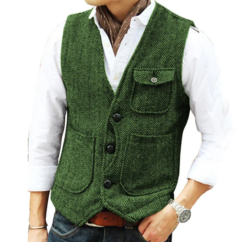 Setzen Sie ein Statement mit der Blake Ärmellose Weste, einer vielseitigen Ergänzung für jeden Kleiderschrank. Diese stilvolle und elegante Weste wurde entwickelt, um Ihren Look zu perfektionieren, sei es für formelle Anlässe oder legere Ausflüge. Ihr schlankes Design und der bequeme Sitz machen sie zur perfekten Wahl für den modernen Mann.