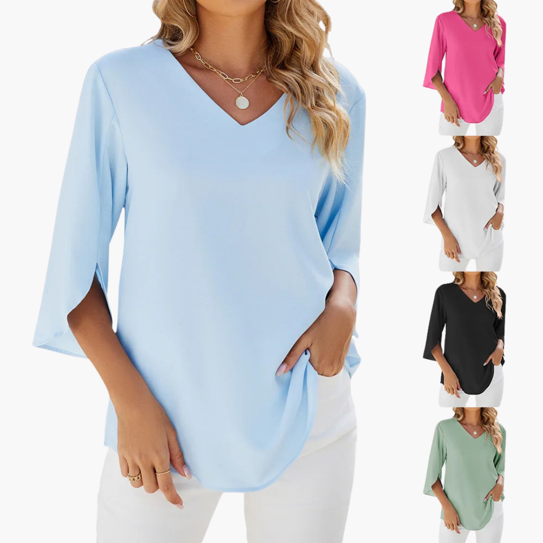 • Luftiger V-Ausschnitt: Verleiht einen femininen Look und unterstreicht das Dekolleté