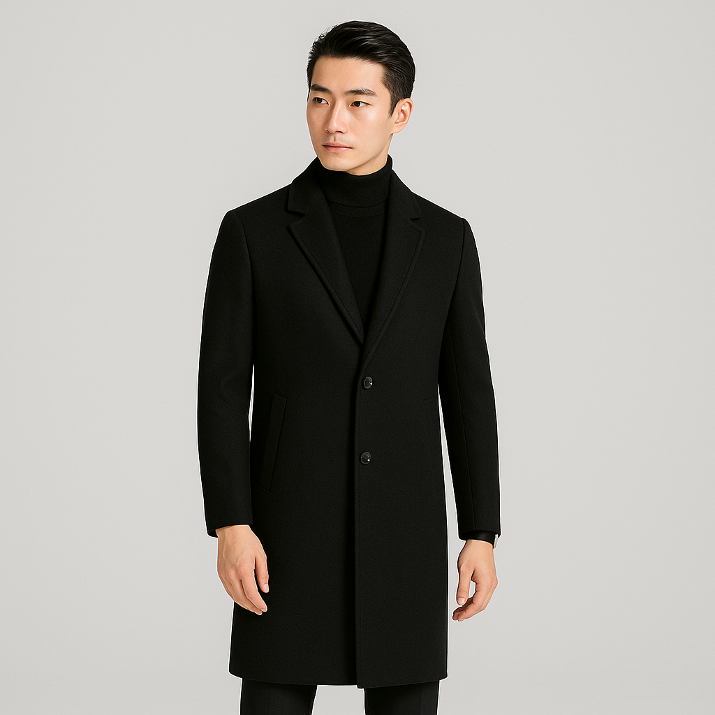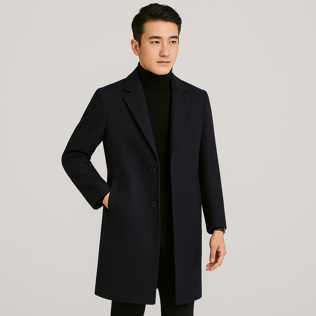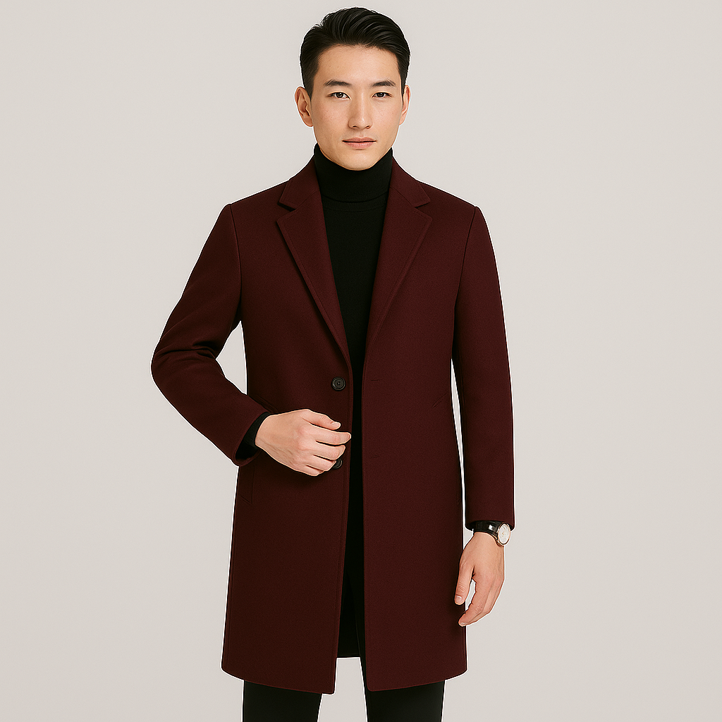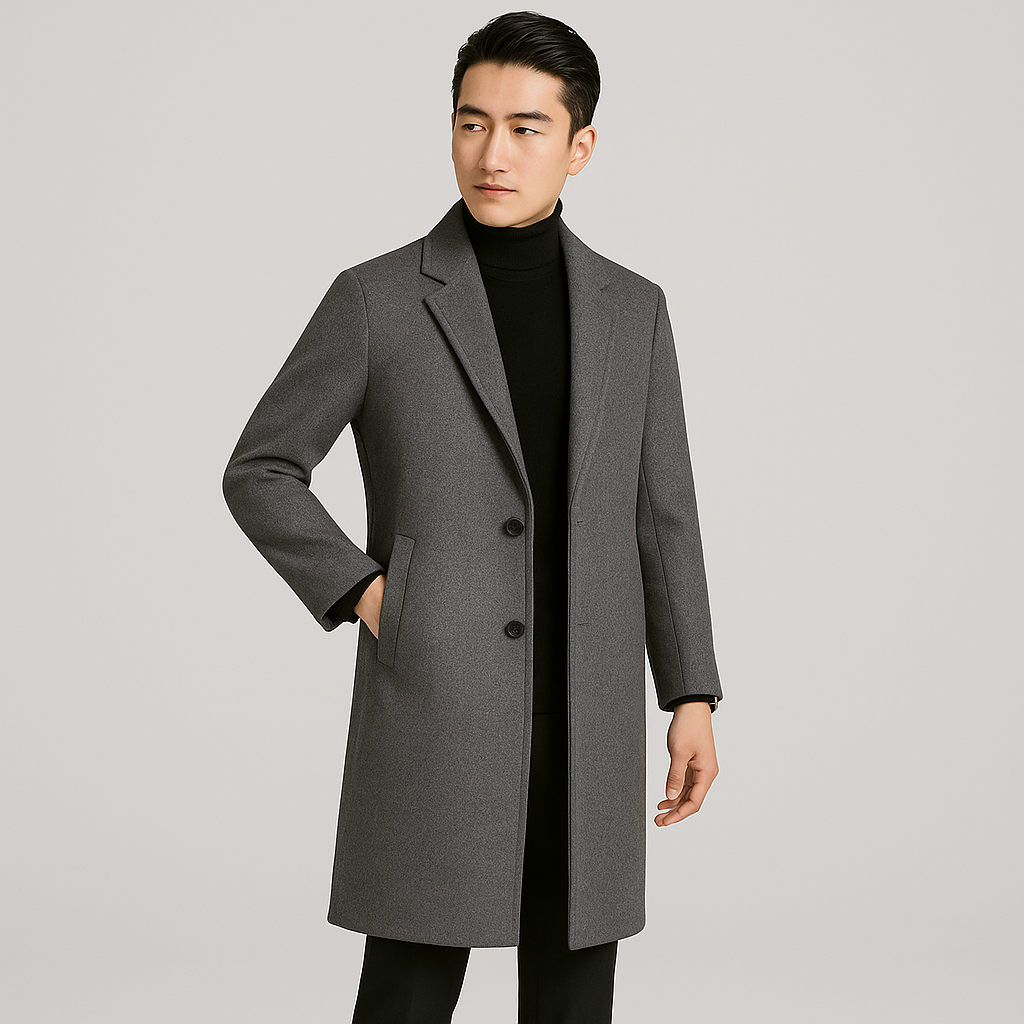 Dieser mittellange Herrenmantel vereint klassischen Stil mit moderner Ausstrahlung. Aus 100 % Polyester gefertigt, bietet er ein leichtes Tragegefühl und einen gepflegten Look, passend für Business- und Freizeitmomente im Herbst oder Winter.