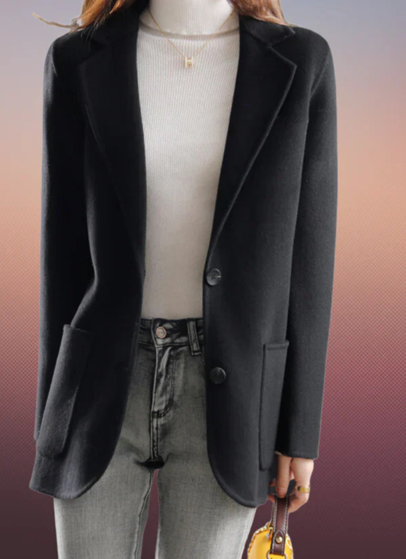 Zeitloses Design: Schlanke, lange Silhouette mit raffinierten Details. Ideal für elegante, geschichtete Looks.
