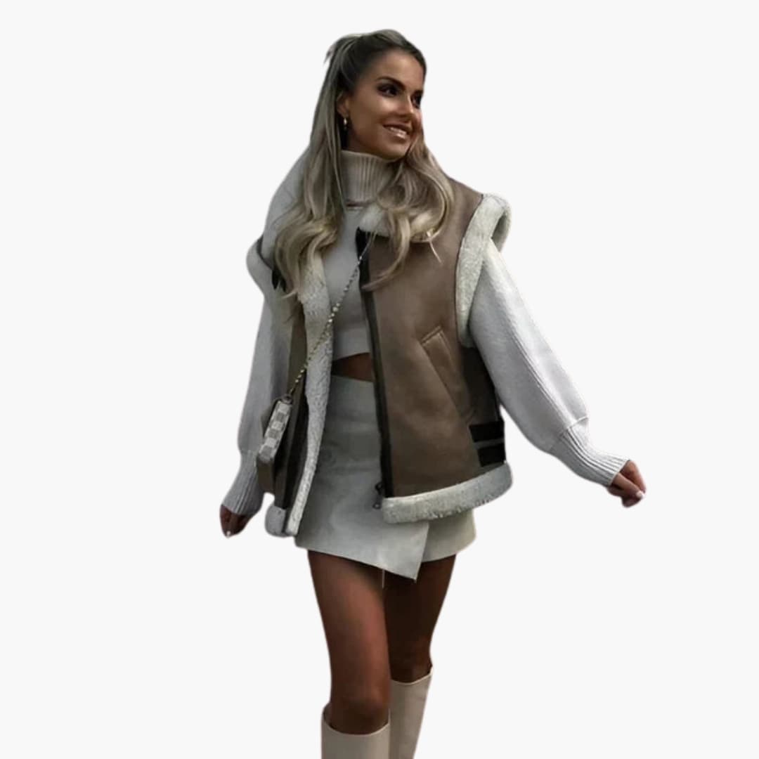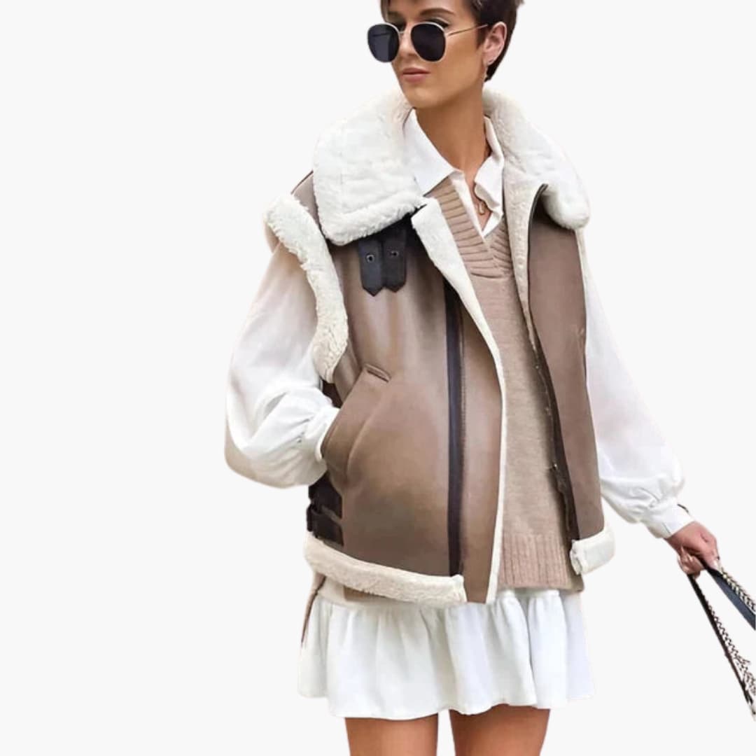 Damen Weste mit Reißverschluss und Kunstfellfutter