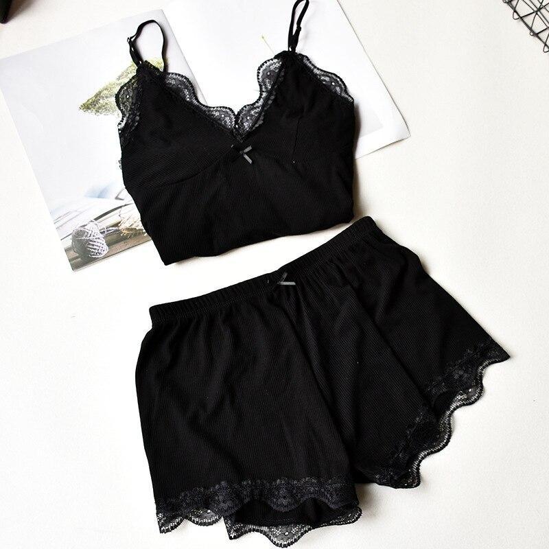 Damenpyjama aus Baumwolle mit süßen Spitzendetails