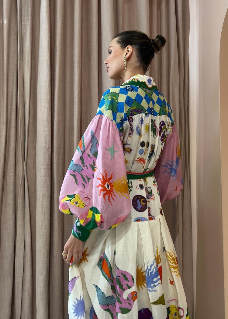 Dank des einzigartigen, farbenfrohen Musters fühlst du dich sofort besonders. Kein langweiliges Basic, sondern ein Kleid, das Energie ausstrahlt.