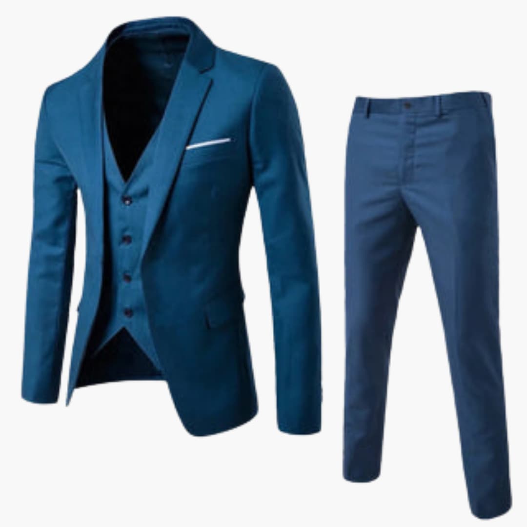 Dieser dreiteilige Anzug für Herren besteht aus einem Sakko, einer Weste und einer Hose, die farblich und stilistisch aufeinander abgestimmt sind. Das Set ist für formelle und festliche Anlässe konzipiert und überzeugt durch eine schlanke Passform, dezente Details und ein strukturiertes Erscheinungsbild. Geeignet für Männer, die ein gepflegtes Outfit für besondere Gelegenheiten suchen.