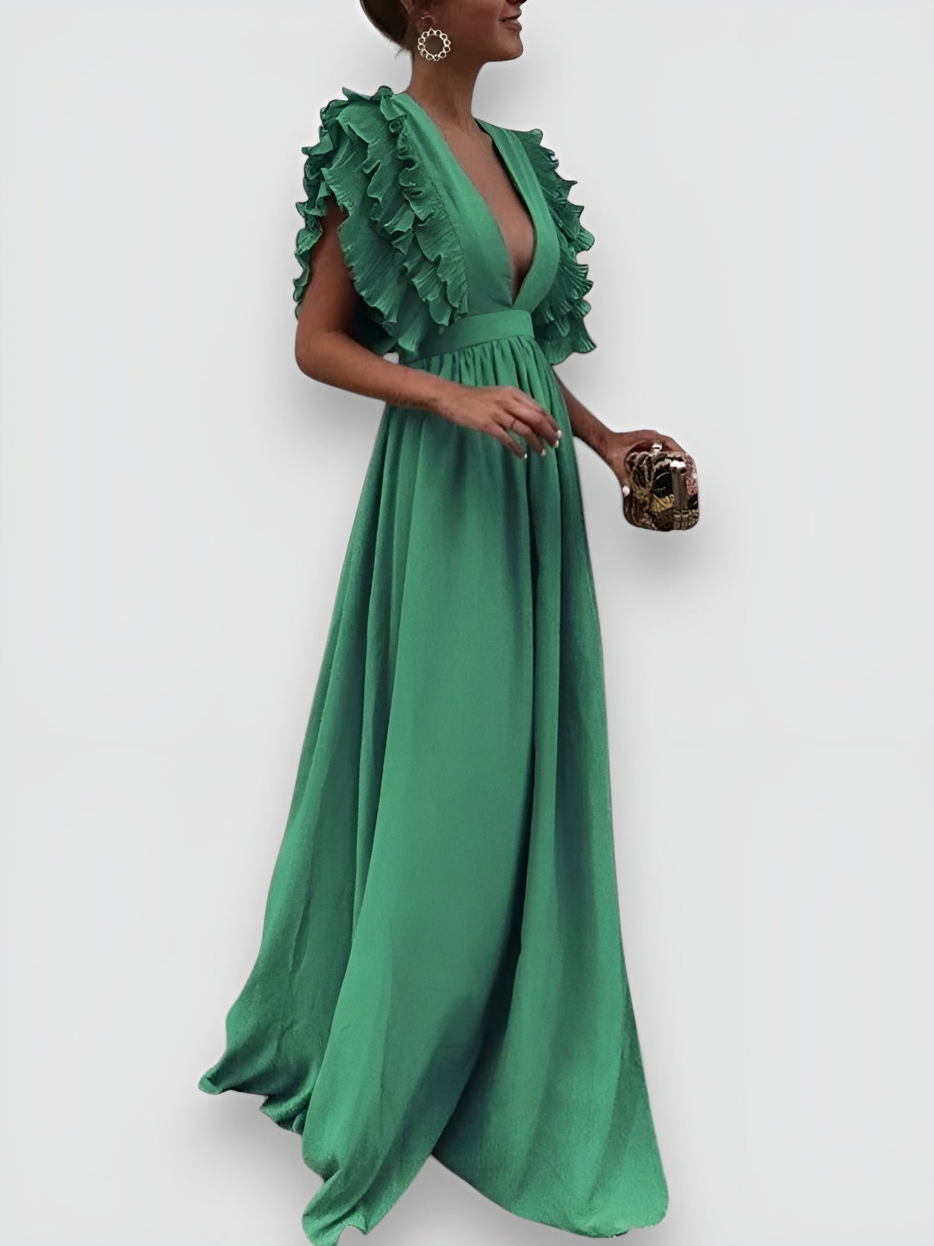 Fügen Sie Ihrem Kleiderschrank mit dem Kleid Ginevra einen Hauch von Raffinesse hinzu. Dieses elegante Kleid mit V-Ausschnitt hat eine leichte Passform, die sowohl schick als auch bequem ist. Perfekt für jeden Anlass, von einem Abendessen bis zu einer eleganten Feier.