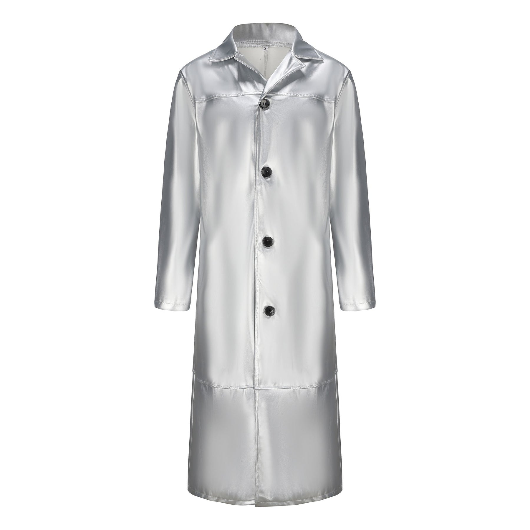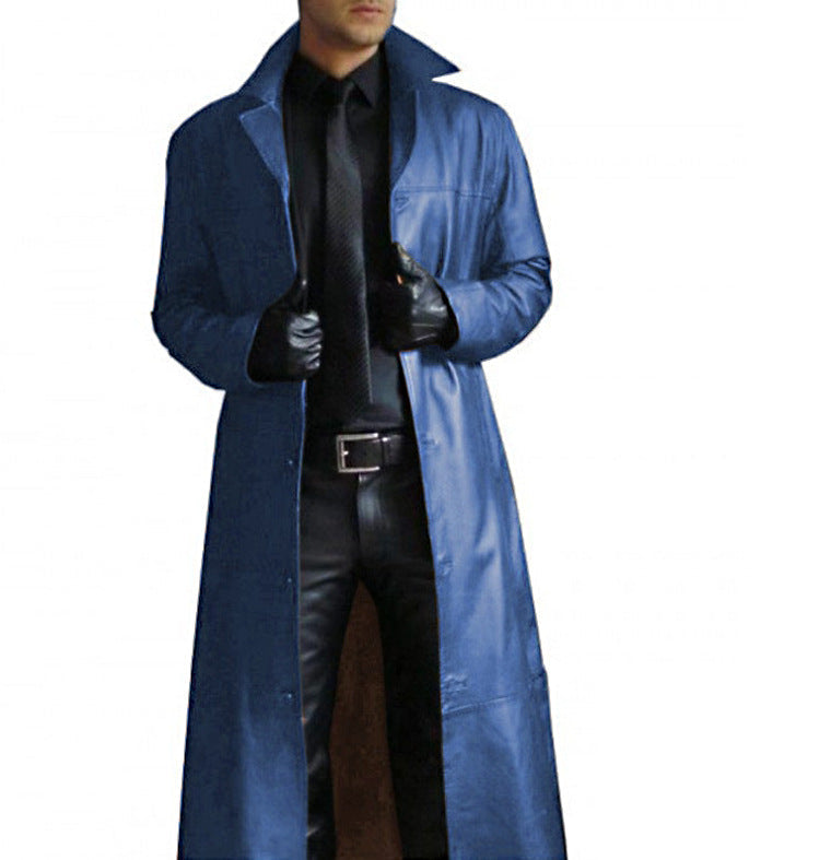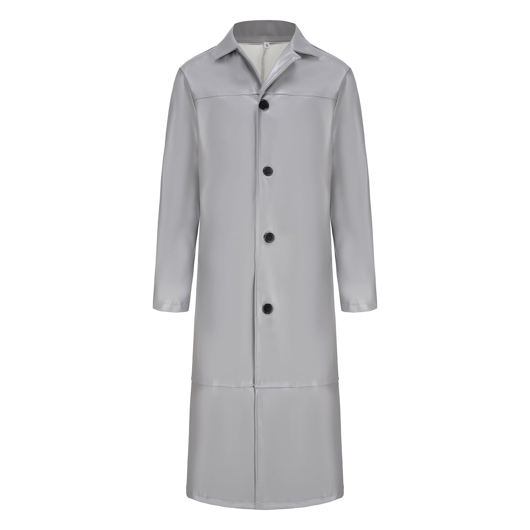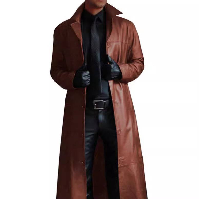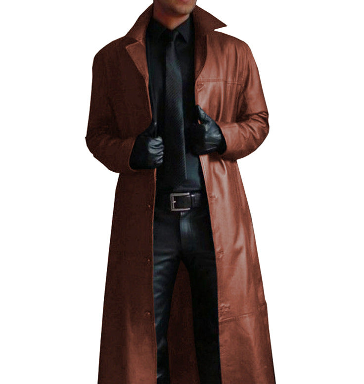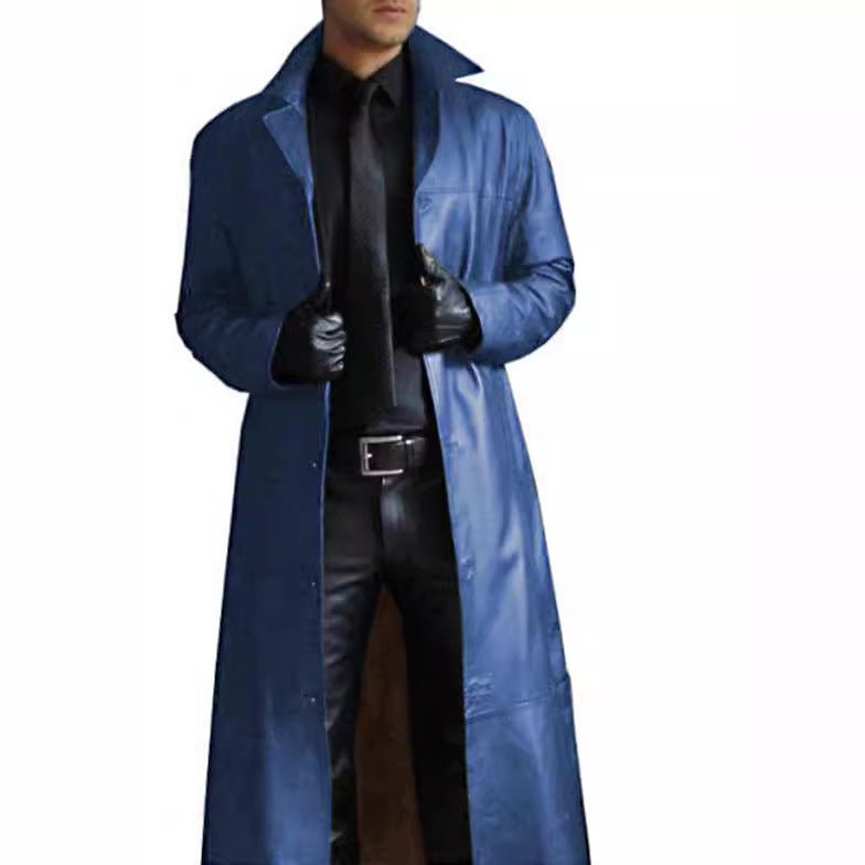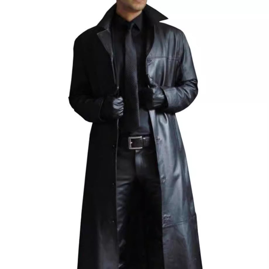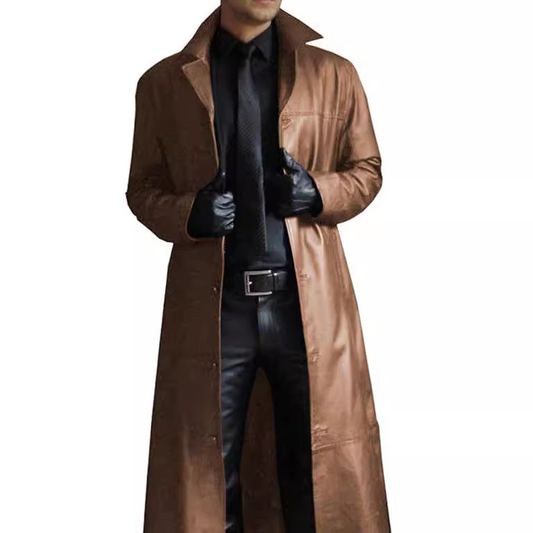 Herren eleganter Kunstledermantel mit doppeltem Knopfverschluss Aliams