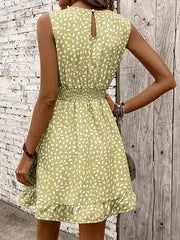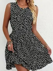 Isabella | Elegantes ärmelloses A-Linien-Kleid mit weißem Blumendruck für Damen