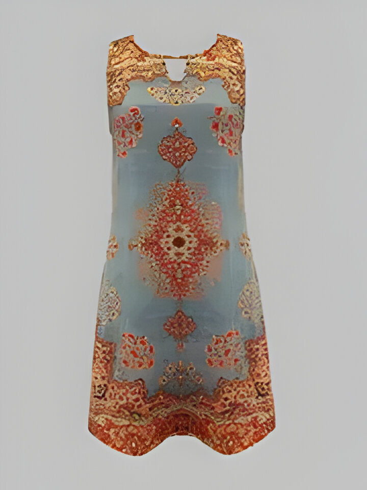 Tauche ein in die Welt zeitloser Eleganz mit diesem tank-inspirierten Kleid, das dir jedes Mal, wenn du es trägst, Selbstvertrauen und Stil verleiht. Ob bei einem sommerlichen Treffen oder einem entspannten Tag draußen, stell dir vor, wie dieses elegante Stück deinen Look aufwertet und dich gleichzeitig den ganzen Tag über komfortabel hält. Das einzigartige grafische Printmuster und der Schlüsselloch-Ausschnitt sorgen dafür, dass du überall auffällst – ein absolutes Must-have in deinem Kleiderschrank.