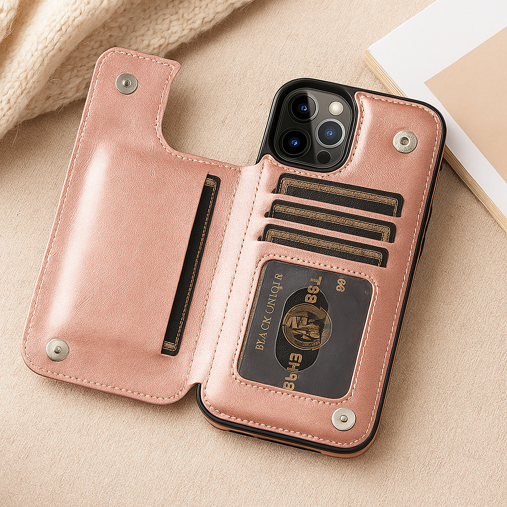 Rüsten Sie Ihr Telefon mit einem Etui auf, das Stil und Funktionalität kombiniert. LeatherGard | Luxuriöse Handyhülle aus Leder mit Kartenfächern und Magnetverschluss ist so konzipiert, dass es Ihrem Gerät den Schutz bietet, den es verdient – und gleichzeitig Ihre Karten sowie wichtigsten Wertsachen stets griffbereit hält.