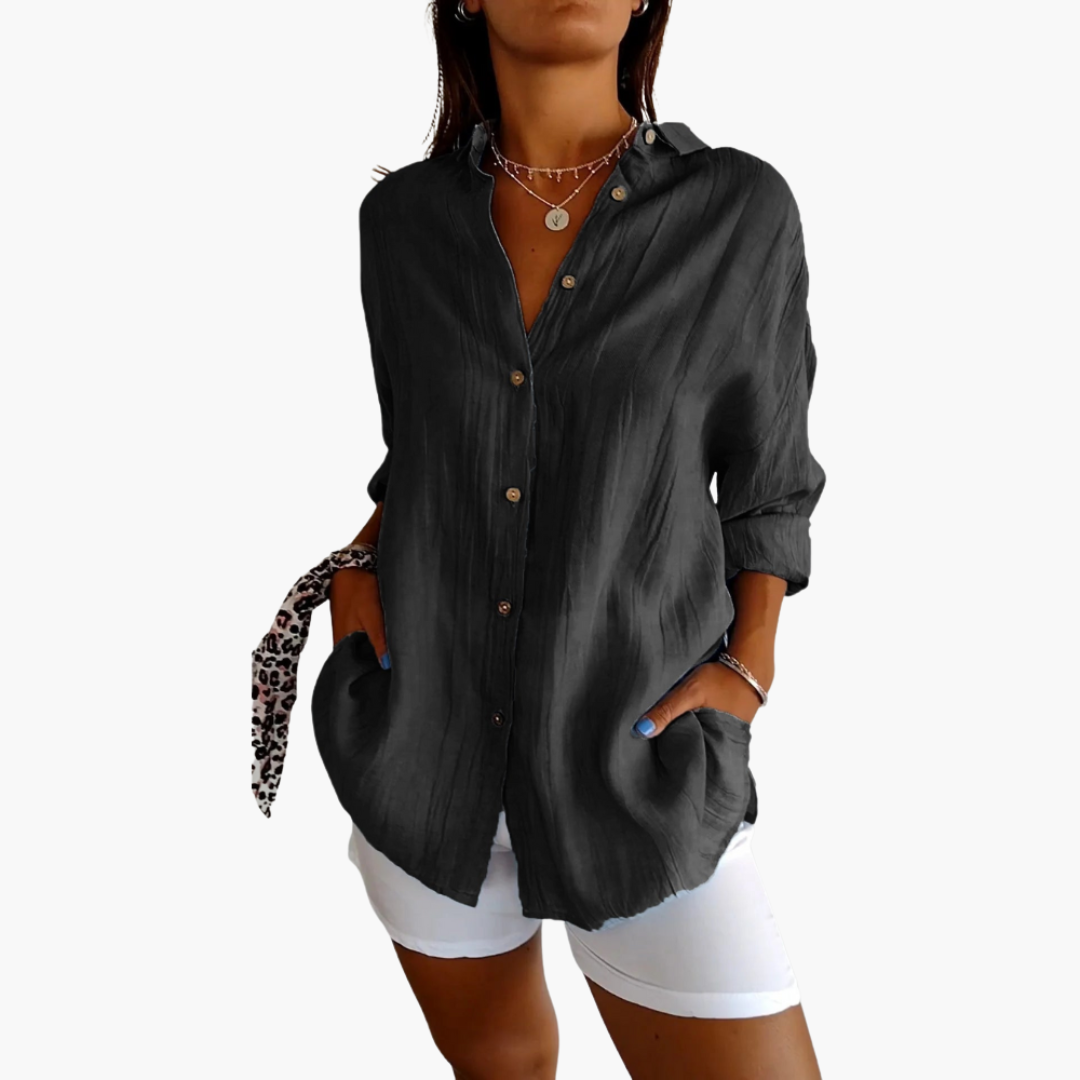 Locker geschnittene lange Bluse für Frauen - Knopfverschluss