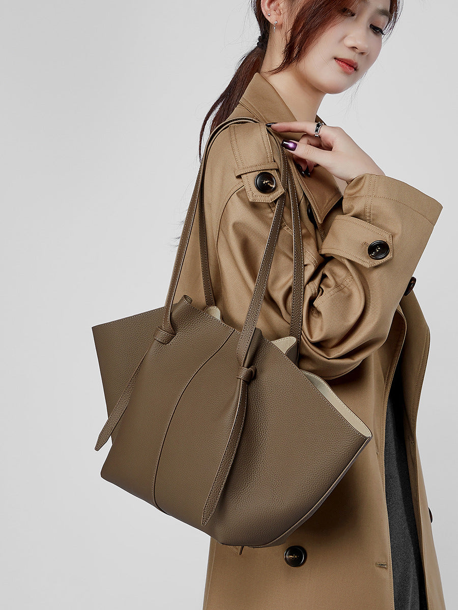 diese elegante tragetasche aus kunstleder vereint moderne schlichtheit mit zeitlosem charme. die abnehmbare innentasche sorgt für organisation und flexibilität, während das klare design sie zu einem vielseitigen begleiter für büro, city oder abendessen macht – stilvoll, funktional und mühelos kombinierbar.