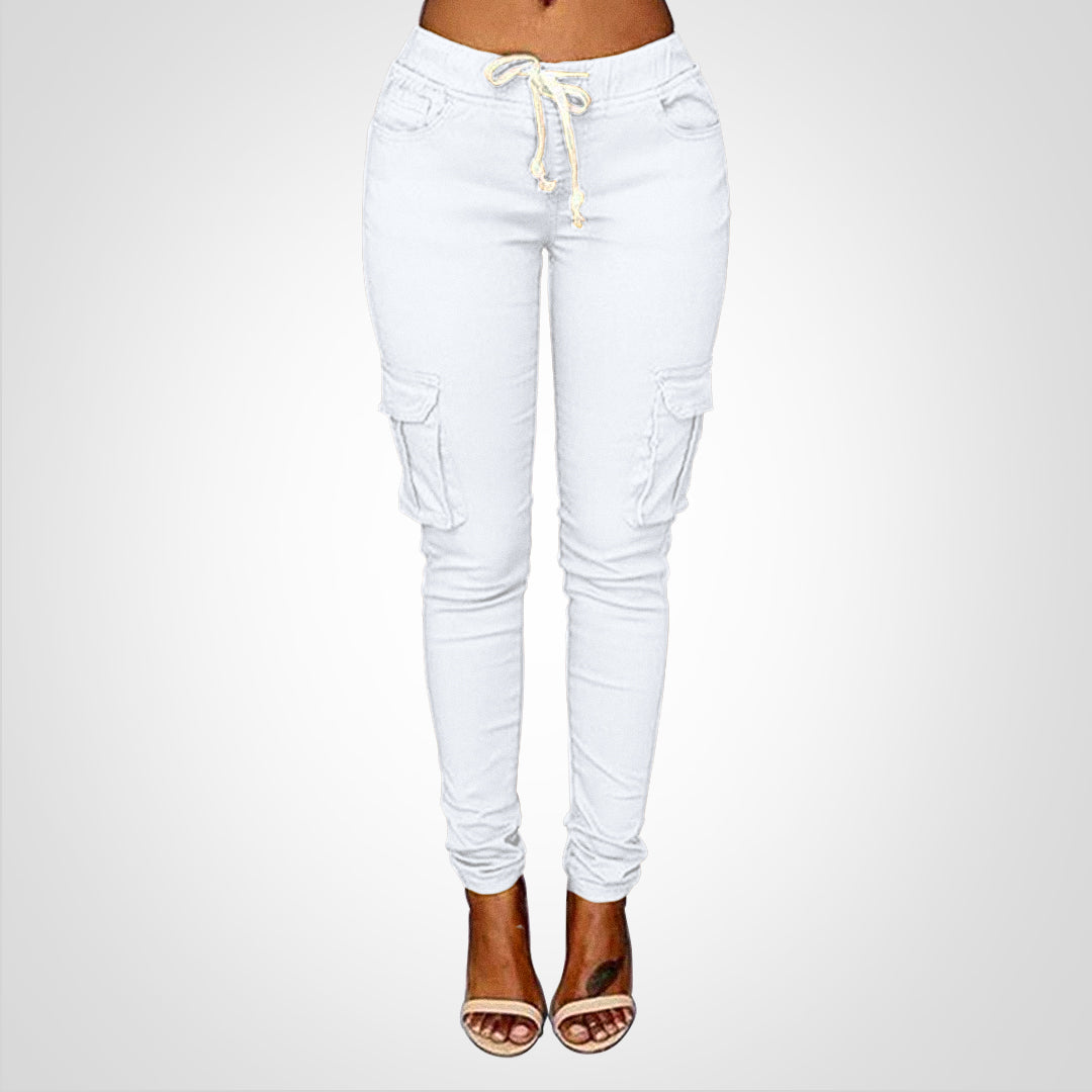 Fühl dich sicher und wohl in Lottie – der Cargo-Hose mit Kordelzug, die modernen Stil mit praktischer Bequemlichkeit verbindet. Ob beim Einkaufen, Treffen mit Freunden oder Outdoor-Abenteuern – diese Hose passt sich deiner Bewegung an, unterstützt dich und bringt deinen Look mühelos zur Geltung.