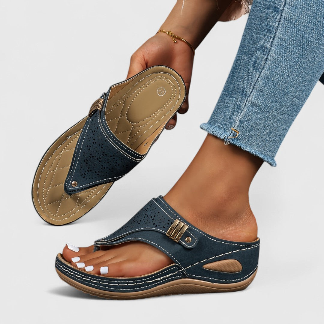 - Ebenmäßiges Design - Die Kombination aus orthopädischen Vorteilen und einem stilvollen Look macht diese Sandale zu einem Must-Have. Jedes Detail wurde mit Sorgfalt gestaltet, um Ihr Outfit zu vervollständigen und Ihr Wohlbefinden zu fördern.