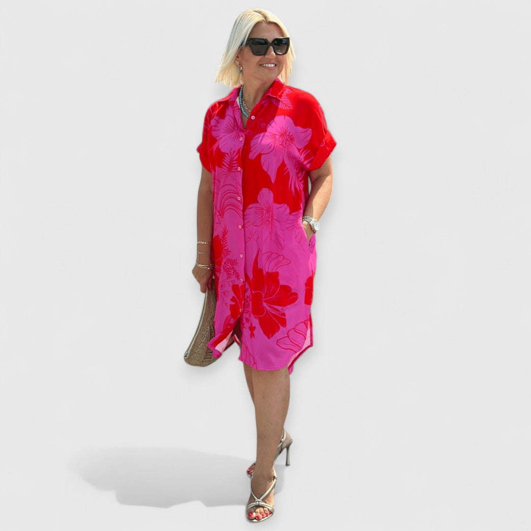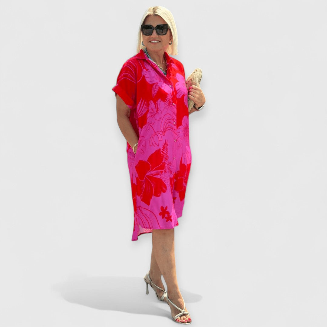 Bringen Sie frischen Wind in Ihren Alltag mit unserem beliebten Naomi Kleid, das dafür entworfen wurde, Sie an sonnigen Tagen mühelos zu begleiten. Dieses Bestseller-Stück kombiniert einen lässigen Schnitt mit einem lebhaften Blumenmuster und sorgt dafür, dass Sie sich zu jedem Anlass wohl und schick fühlen.