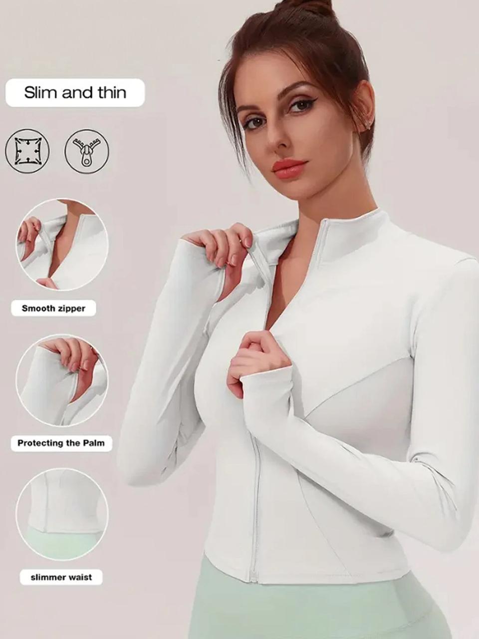Diese figurbetonte sportjacke verbindet funktionalität mit modernem style. das atmungsaktive, schnelltrocknende material sorgt für angenehmen tragekomfort, egal ob beim pilates, yoga oder jogging. der hohe kragen schützt zusätzlich, während der durchgehende reißverschluss flexibles styling ermöglicht. perfekt für aktive frauen, die wert auf bewegungsfreiheit und design legen.