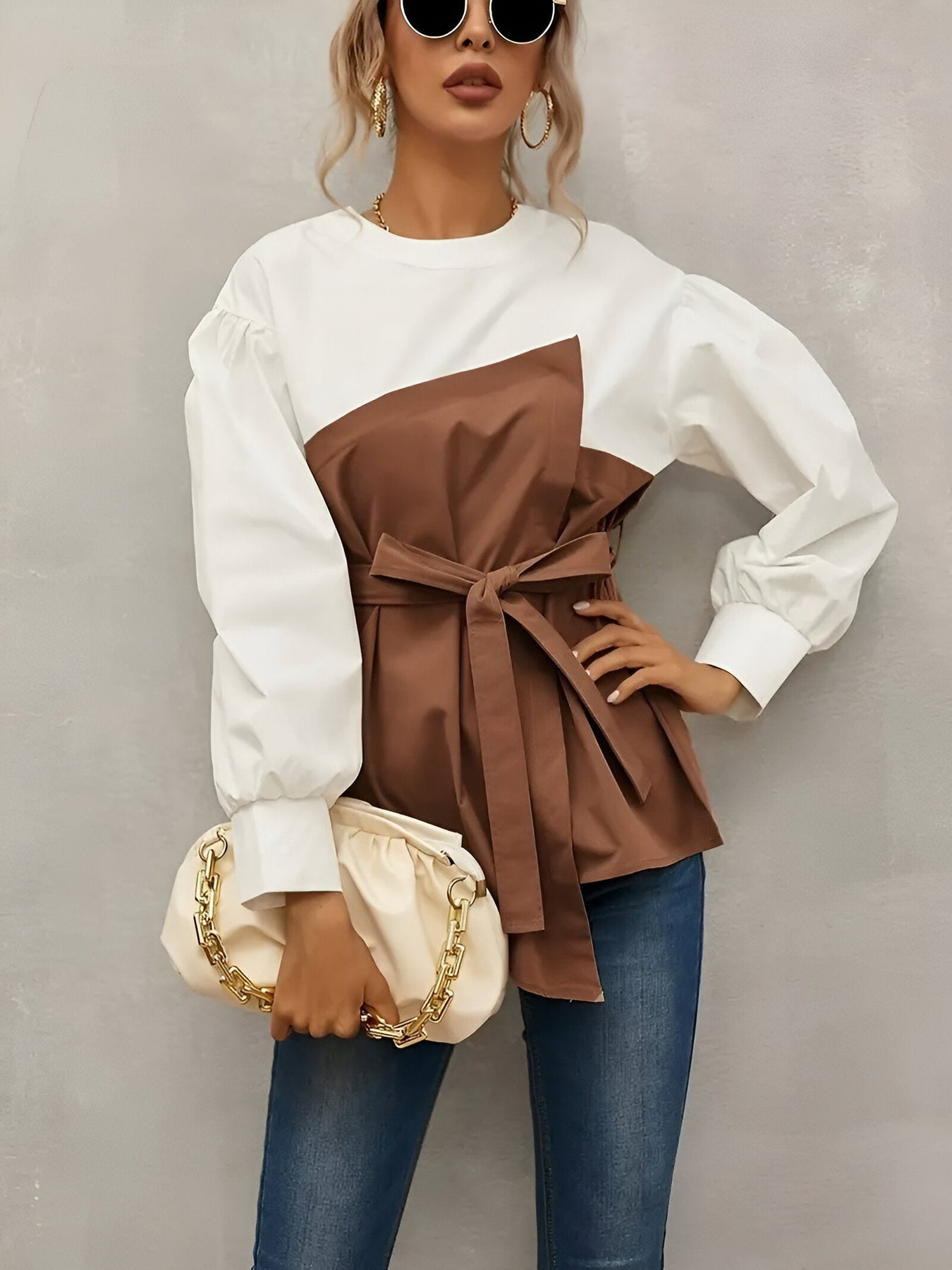 Ormanda | elegantes tweed-Imitat-farbblock-shirt für damen