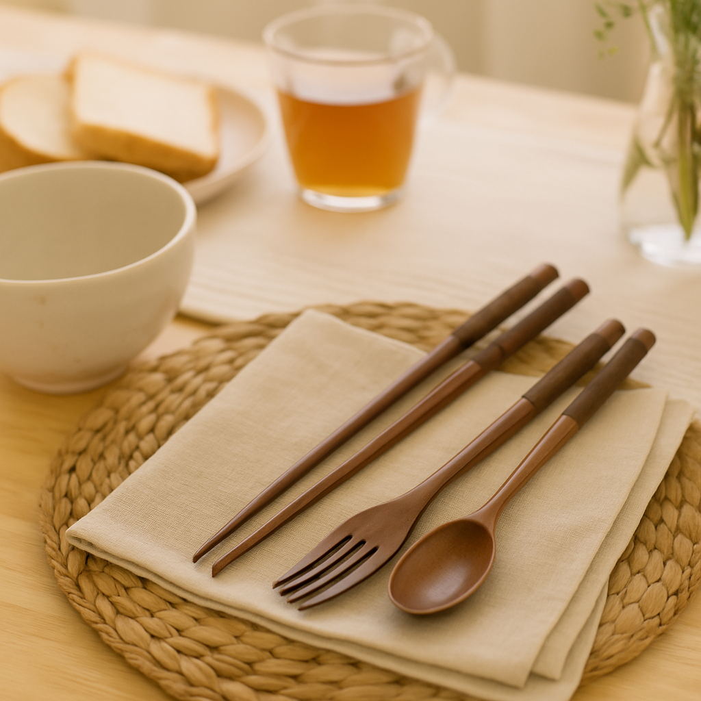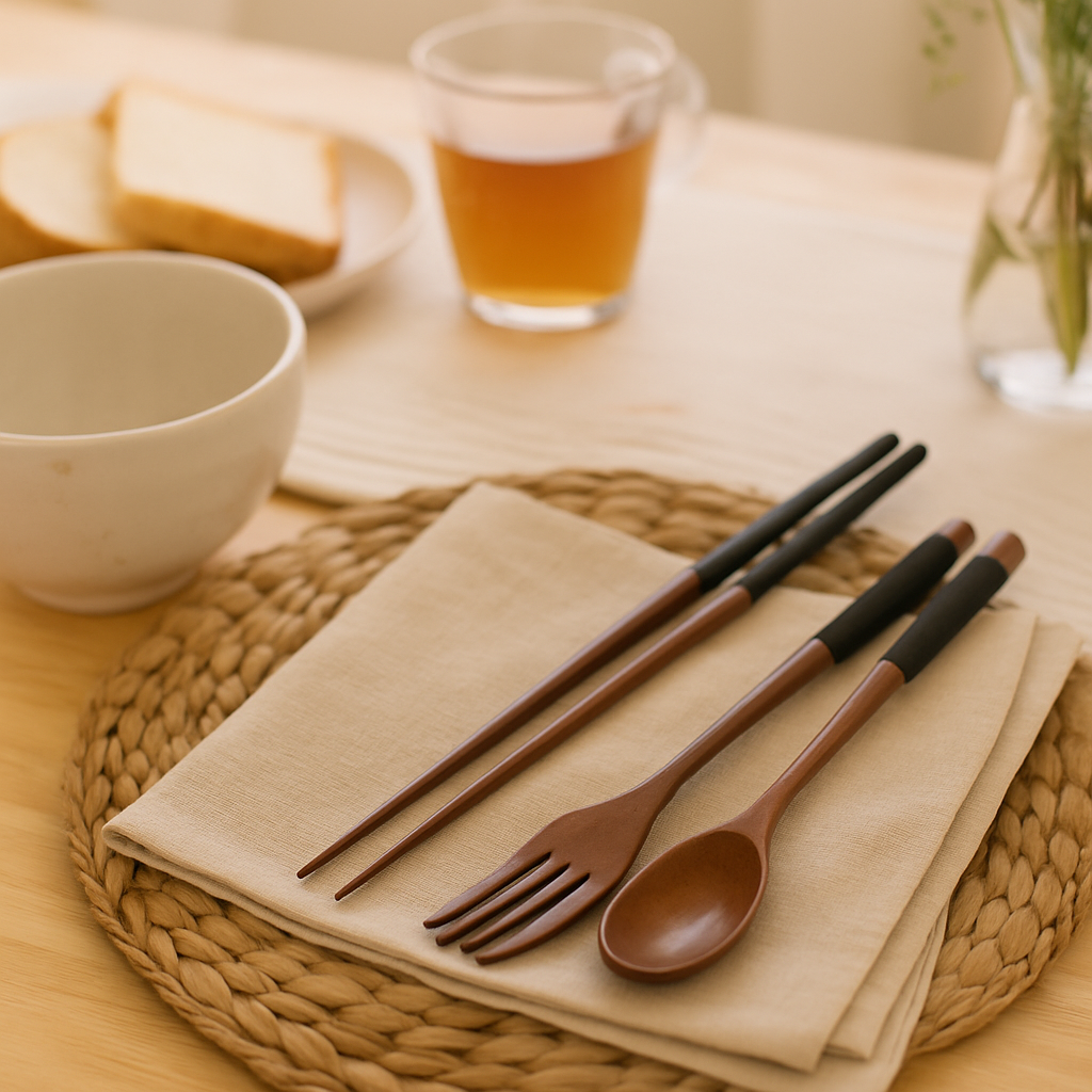 Dieses 3-teilige Holz-Esszimmerset verleiht alltäglichen Mahlzeiten schlichte Eleganz. Handgefertigt für Balance und Komfort, umfasst es Essstäbchen, eine Gabel und einen Löffel – perfekt für Reis, Suppe, Getreide oder Mahlzeiten unterwegs.