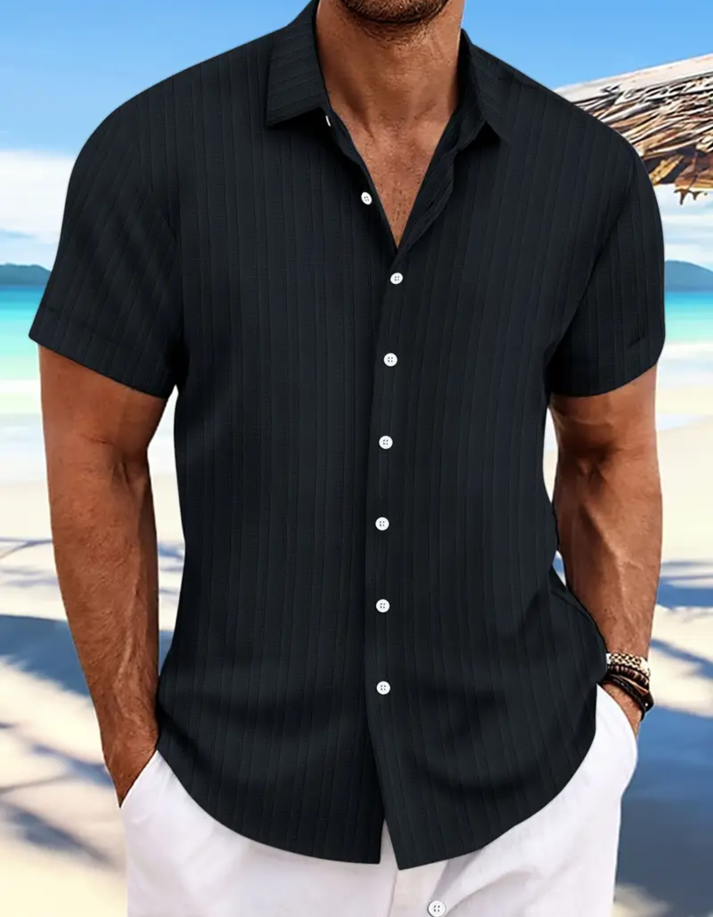 Wir stellen Ihnen Robbie vor, die perfekte Mischung aus lässiger Eleganz. Dieses Kurzarm hemd verfügt über einen lockeren Schnitt und eine klassische Button-Down-Vorderseite, was es zu einem vielseitigen Teil für Ihre Garderobe macht. Ob Sie zu einem Freizeitausflug aufbrechen oder zu Hause entspannen, Robbie sorgt den ganzen Tag über für Komfort und Stil. Die freizeithemd verleiht ihm zeitlose Eleganz, während das leicht tragbare Design einen raffinierten, aber entspannten Look bietet.