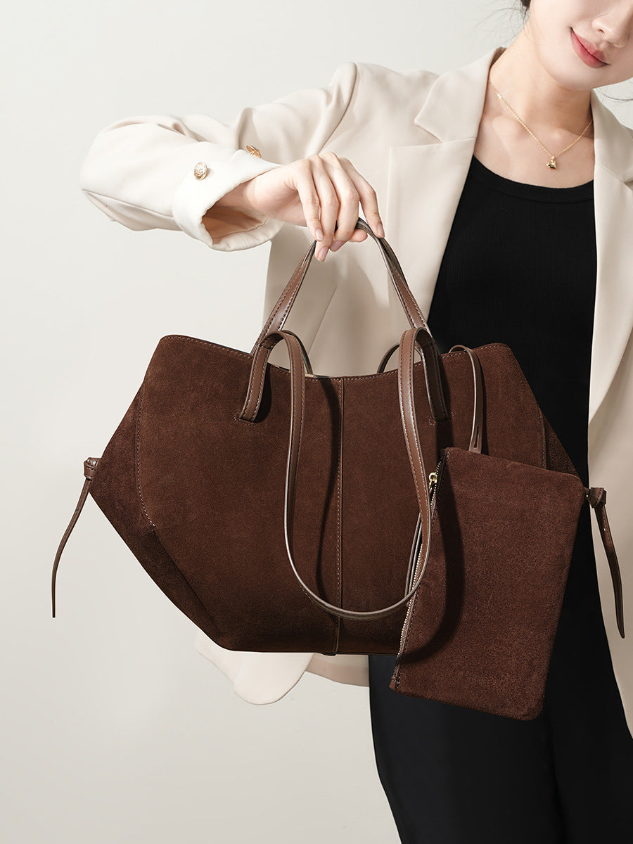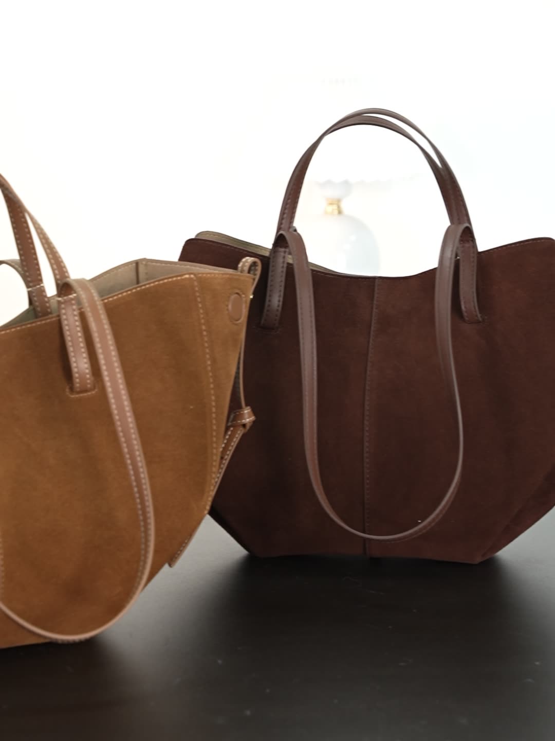 Elegante Shopper-Bag im modernen, minimalistischen Design – perfekt für Büro, Alltag und City-Trips. Die Kombination aus Wildleder-Optik und klaren Linien macht sie zu einem stilvollen Essential mit großzügigem Stauraum.