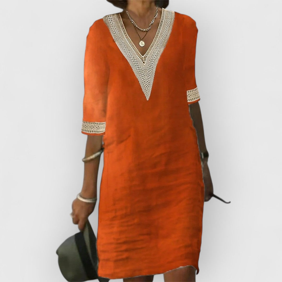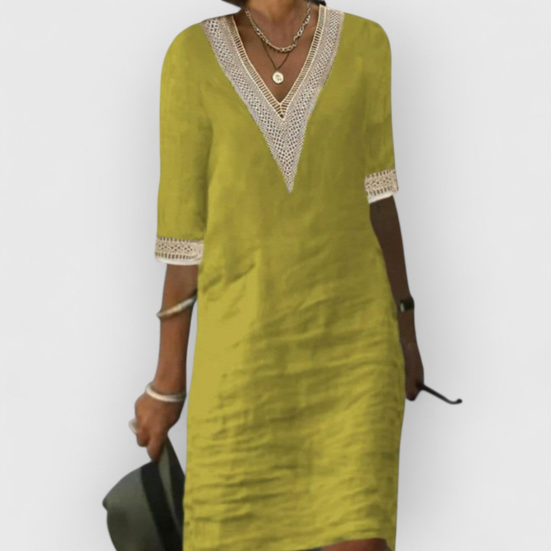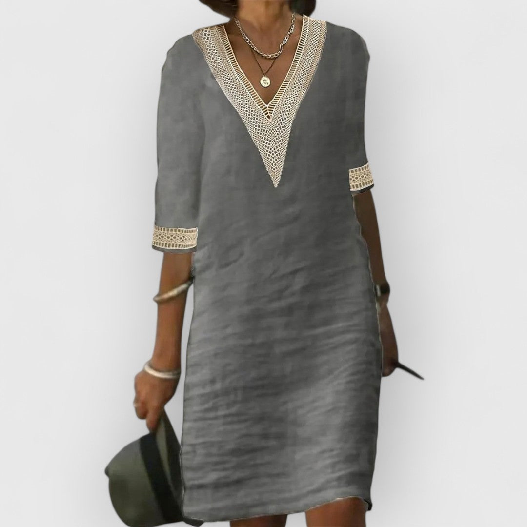- Chic Design - Mit einem schmeichelhaften V-Ausschnitt und zarter Spitzenverzierung kombiniert dieses Kleid trendige Details mit zeitlosem Stil für einen Look, der immer beeindruckt.