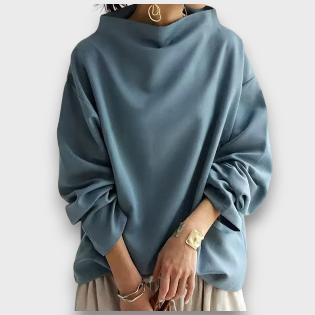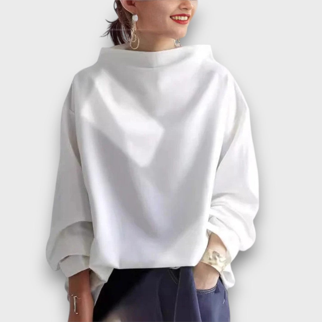 Weylin verbindet schlichte Eleganz mit modernem Komfort. Der hohe Kragen setzt einen raffinierten Akzent, während der lockere Schnitt Bewegungsfreiheit und eine entspannte Silhouette schenkt. Ein Top, das sich mühelos kombinieren lässt und jedem Outfit eine zeitlose Note verleiht.