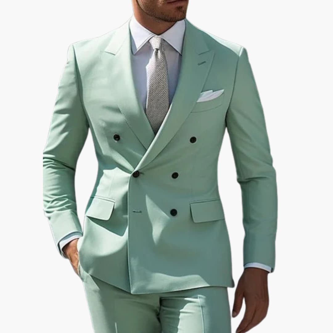 Dieser Herrenanzug für formelle Anlässe verfügt über eine zweireihige Knopfleiste und ein strukturiertes Sakko mit Spitzrevers. Hergestellt aus leichtem Stoff, geeignet für den ganzjährigen Einsatz. Enthält lange Ärmel, einen schmalen Schnitt und eine maßgeschneiderte passende Hose. Entworfen für formelle Anlässe wie Hochzeiten, geschäftliche und zeremonielle Veranstaltungen.